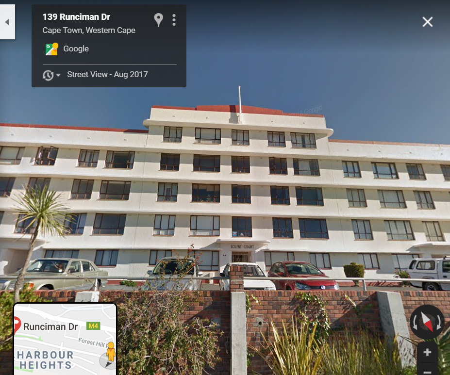 I had a few neighbors, I was friendly with…and they were asking questions… police every morning and evening… why… and I said… an ex boyfriend is stalking me and threatening me…and asked them to be on the look out for “unfamiliar” cars, and write down the license plates. Especially one couple, retired. they were living in a ground floor flat…and always sitting by the huge floor to ceiling windows…with views of the bay…and the the road leading to our block of flats, SOLENT COURT, on Runciman Drive, in Simon’s-Town, and the parking area in front of our building too.